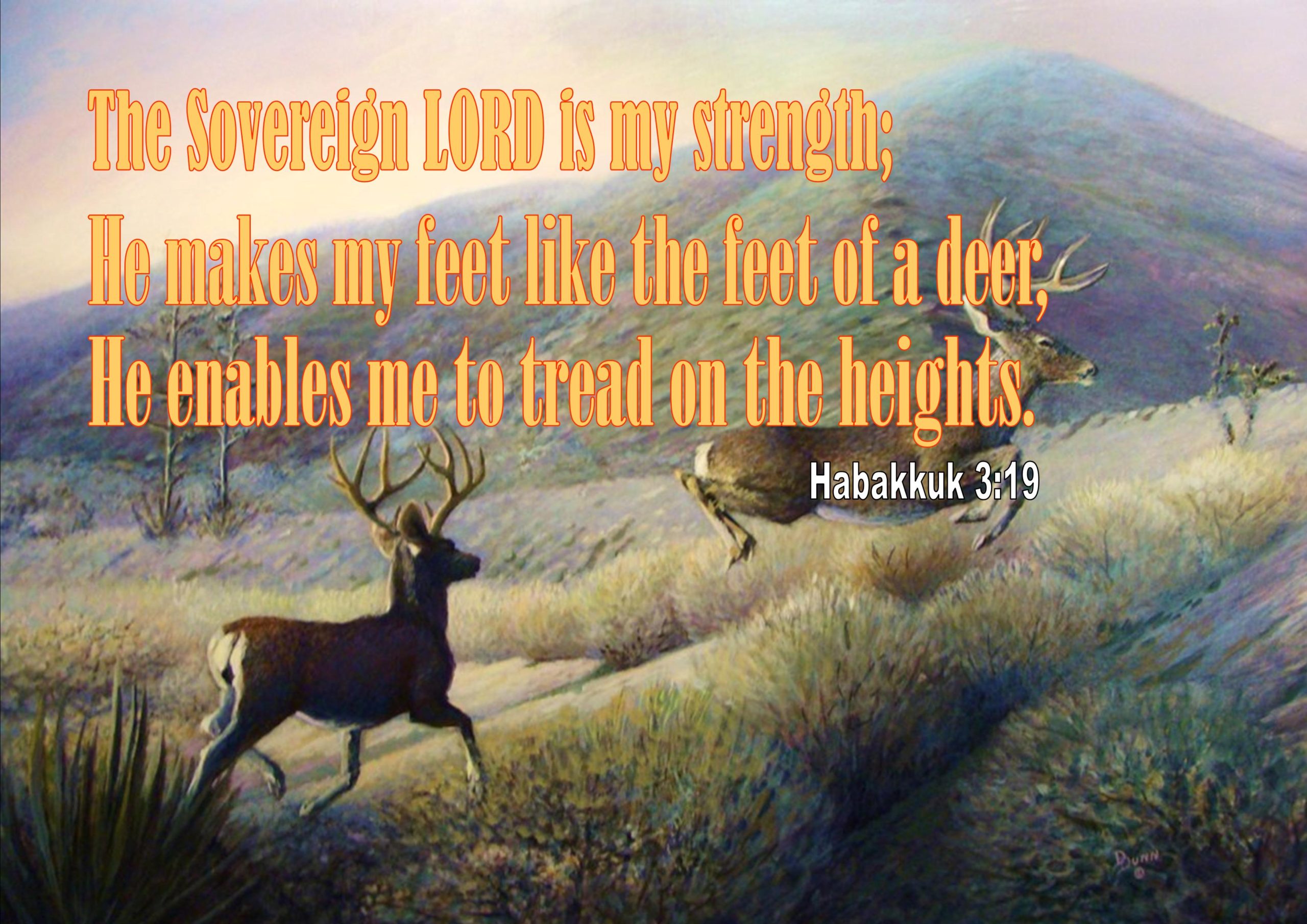 Habakkuk 3:19 The Sovereign Lord is my strength; he makes my feet like the feet of a deer, he enables me to tread on the heights.